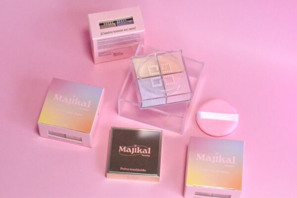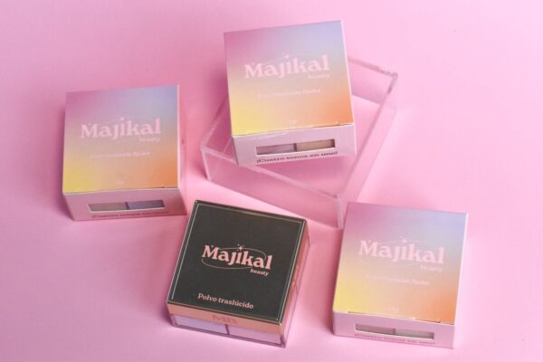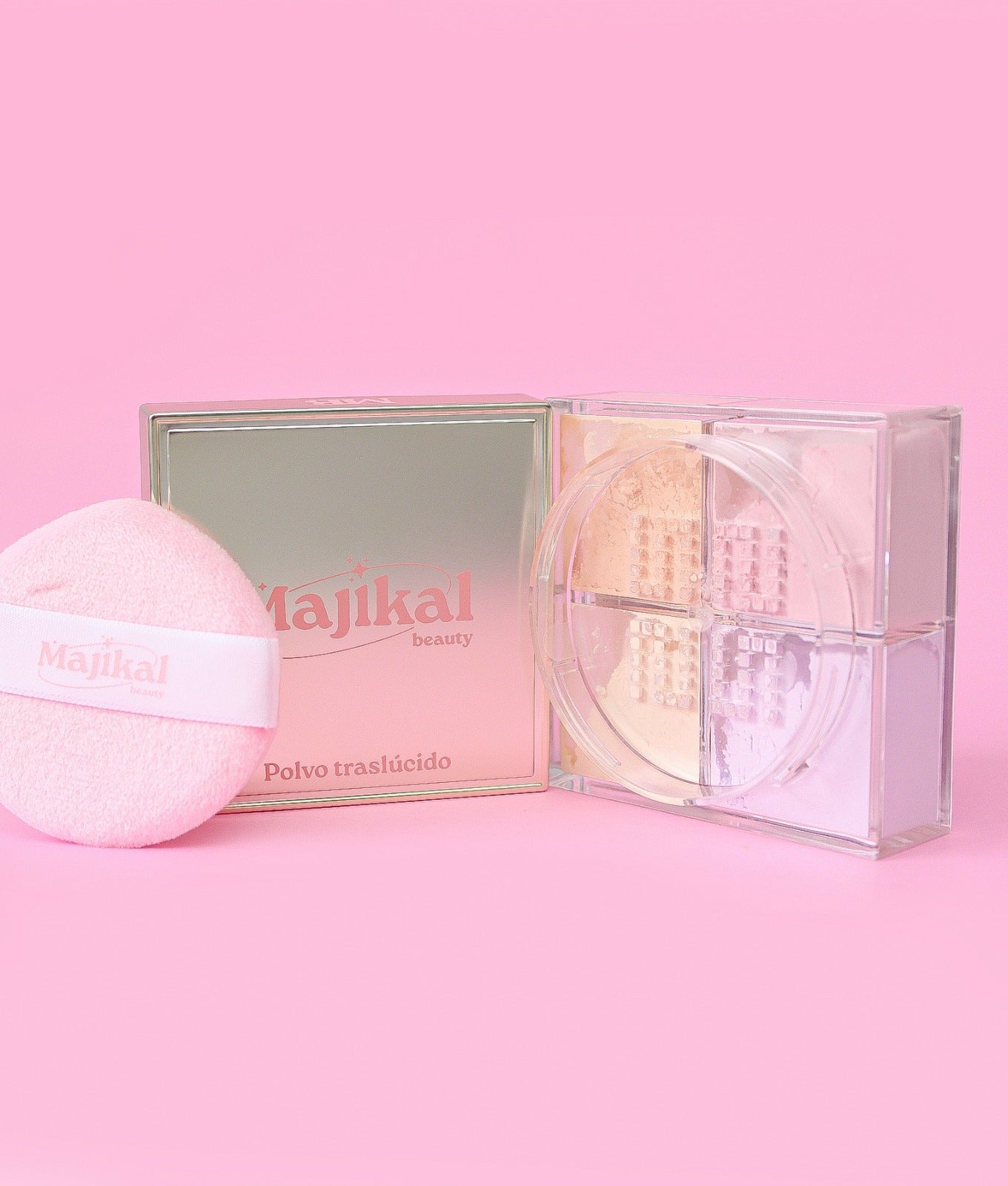 El polvo suelto de Majikal es traslúcido, fijador y corrector de color, que contiene cuatro tonos armonizados, adaptados a todo tipo de piel para un acabado suave. Matifica, corrige y difumina los poros.