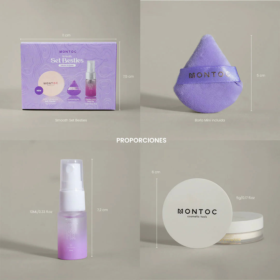 Practicidad: tres mini esenciales fáciles de usar y de llevar a cualquier lugar. perfectos para retocar el maquillaje o mantener la piel con acabado suave todo el día.