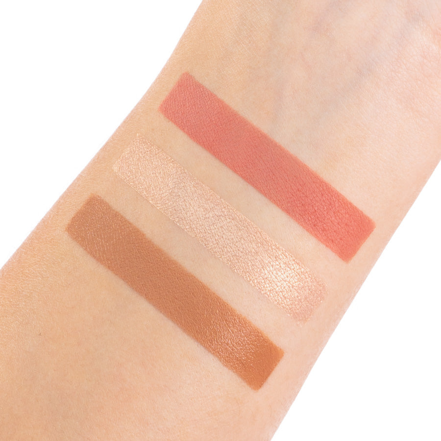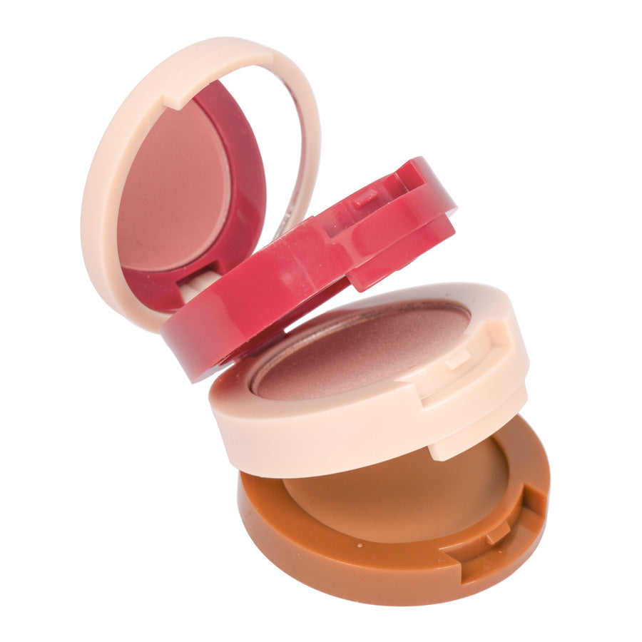 - Así es el nuevo Cat Face, contiene un rubor en tono rosita durazno para tus mejillas, un iluminador en tono oro rosa perfecto para utilizar como iluminador y un bronzer en crema en tono universal.